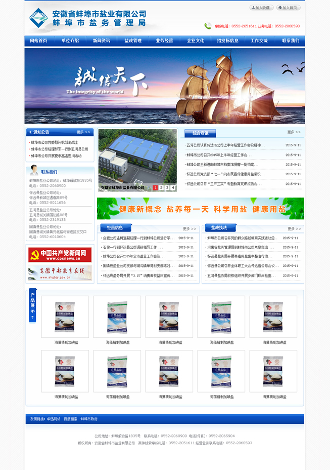 多年來,蚌埠鹽業(yè)認真貫徹落實國家《食鹽專營辦法》、《食鹽加碘消除碘缺乏危害管理條例》,始終以食鹽市場安全穩(wěn)定為天職,忠實履職,恪盡職守。一方面對全市鹽業(yè)市場進行鹽政監(jiān)管,嚴厲打擊鹽業(yè)違法犯罪,全力維護食鹽市場安全穩(wěn)定;另一方面負責組織開展食鹽專營,致力為消費者提供安全、優(yōu)質(zhì)、放心的加碘食鹽,確保全市371萬人口的食鹽供應。與此同時,蚌埠鹽業(yè)主動適應市場需要,積極拓展非鹽經(jīng)營,在發(fā)展的道路上不斷深化改革,自主創(chuàng)新,產(chǎn)業(yè)結構轉型邁出堅實步伐,全區(qū)總資產(chǎn)已近8000萬元,現(xiàn)有經(jīng)營倉儲面積約1.5萬平米,在建倉庫1萬余平米。2014年實現(xiàn)銷售收入14762.69萬元,其中食鹽銷售4967.40萬元,非鹽銷售9795.20萬元、實現(xiàn)利稅1124.52萬元,經(jīng)濟社會效益居全省同行領先。先后榮獲全省鹽業(yè)系統(tǒng)先進單位五連冠、安徽省勞動保障誠信示范企業(yè)、安徽省衛(wèi)生先進單位、檔案管理考核安徽省一級單位、蚌埠市A級納稅信用單位、蚌埠市第十四屆文明單位等多項榮譽稱號。